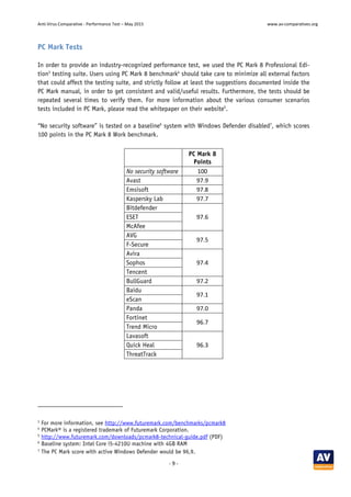 Baidu Antivirus Review | PCMag Baidu doesn't participate in testing by AV-Comparatives or Dennis Technology Labs, which is a shame, because these two perform some really excellent real-world testing. With six points possible...