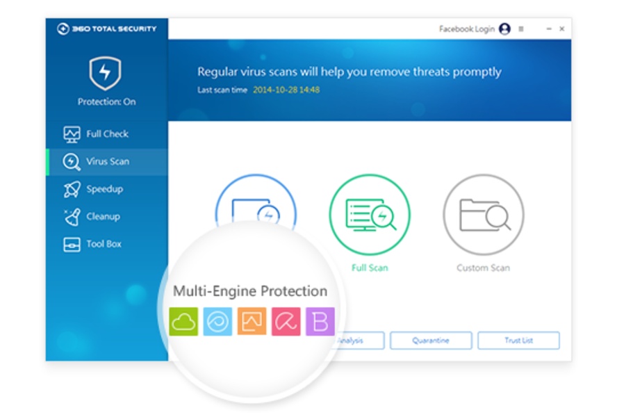 360 Total Security: Free Antivirus Protection for Home and Business ... 360 Total Security Features Anti-Ransomware Compare Products Download Simple yet Powerful Protection Speedup Cleanup Learn More We are Security Integrating award winning antivirus engines from 360 Cloud Scan Engine, 360 QVMII AI Engine, QEX and Kunpeng to provide you with the ultimate in Virus detection and protection capabilities.